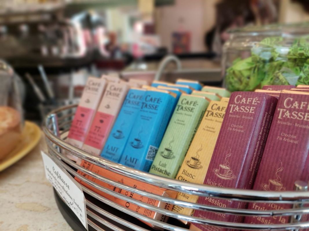 Die gibt es übrigens auch als französisches Frühstück, mit Caffè latte, heißer Schokolade oder Cappuccino. Stilecht an den Bistrotischen eingenommen, lässt man dann den Blick über das Treiben in der Schlossstraße schweifen.