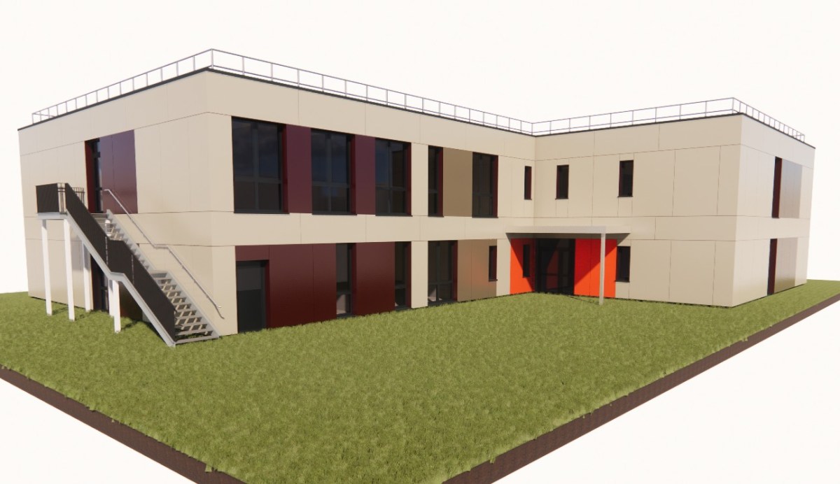 Eine Visualisierung der Sofortschule in Refrath. Grafik: Stadt GL