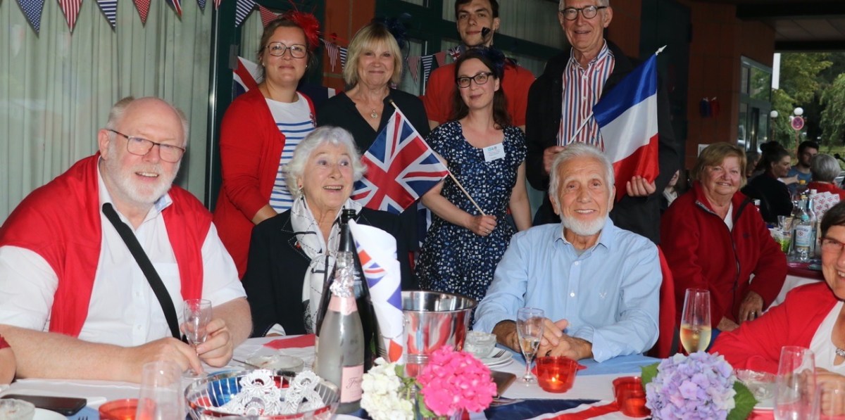 Achtundsiebzig multinationale Picknick-Gäste versammelten sich am Samstag unter den Flügeln des Bergischen Löwe, geschützt vor herannahenden Regenschauern. Und feierten in rot, weiß und blau die Städtepartnerschaften mit Runnymede, Luton, Joinville-le-Pont und Bourgoin-Jallieu.