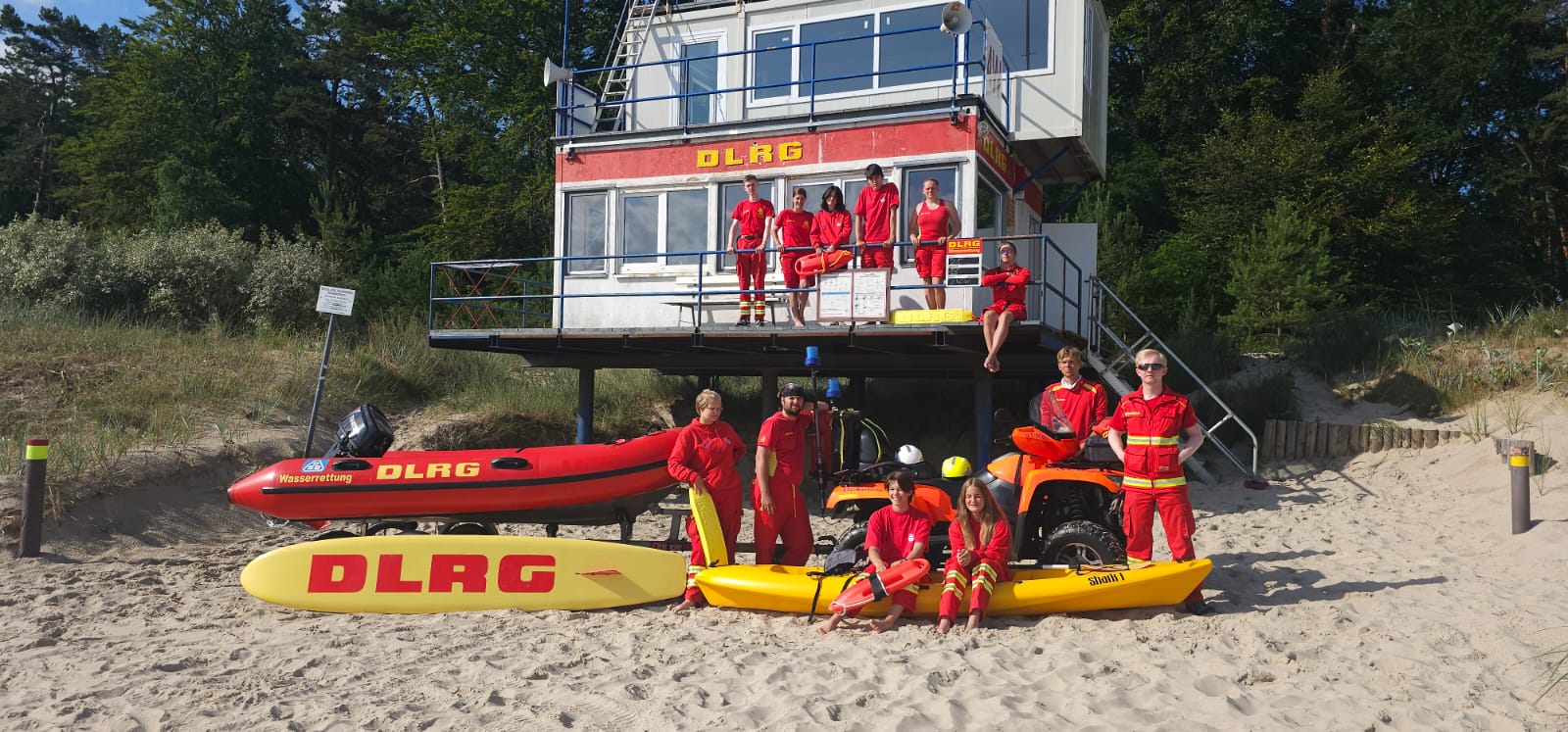Dieses Jahr startete eine Gruppe junger Rettungsschwimmer aus der Ortsgruppe Bergisch Gladbach und der Ortsgruppe Burscheid der Deutsche Lebens-Rettungs-Gesellschaft (DLRG) schon Ende Juni, um gemeinsam eine Wasserrettungsstation auf Usedom zu besetzen. Die Jugendlichen im Alter von 15 bis 20 Jahren wurden dabei von Jasmin Luciani und Nico Hinrichs (Wachführung und Bootsführung) betreut.
