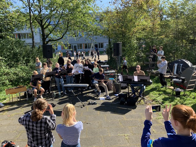 Schüler:innen aus dem Abiturjahrgang schrieben einen „Song für die Welt“ und eine weitere Gruppe kreierte „Musik für den Frieden“.