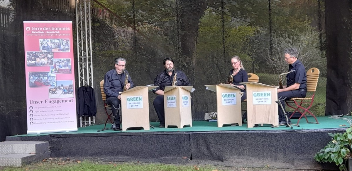 Den Kultursommer 2023 in Bergisch Gladbach rundete das gut besuchte Konzert des Green Smart Saxophone Quartets mit rund 90 Besuchern ab. Sie waren der Einladung von terre des hommes und der evangelischen Gnadenkirche in den Kirchgarten gefolgt.