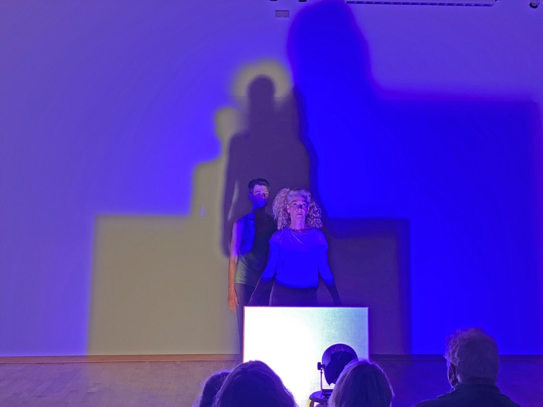 Bei der Vernissage vermittelten die Tänzerinnen Christiane Budden und Britta Lieberknecht eine zeitgenössische tänzerische Definition des Themas – Licht und Schatten. Bewegung bis in das Eintauchen in eine scheinbare bildnerische Welt.