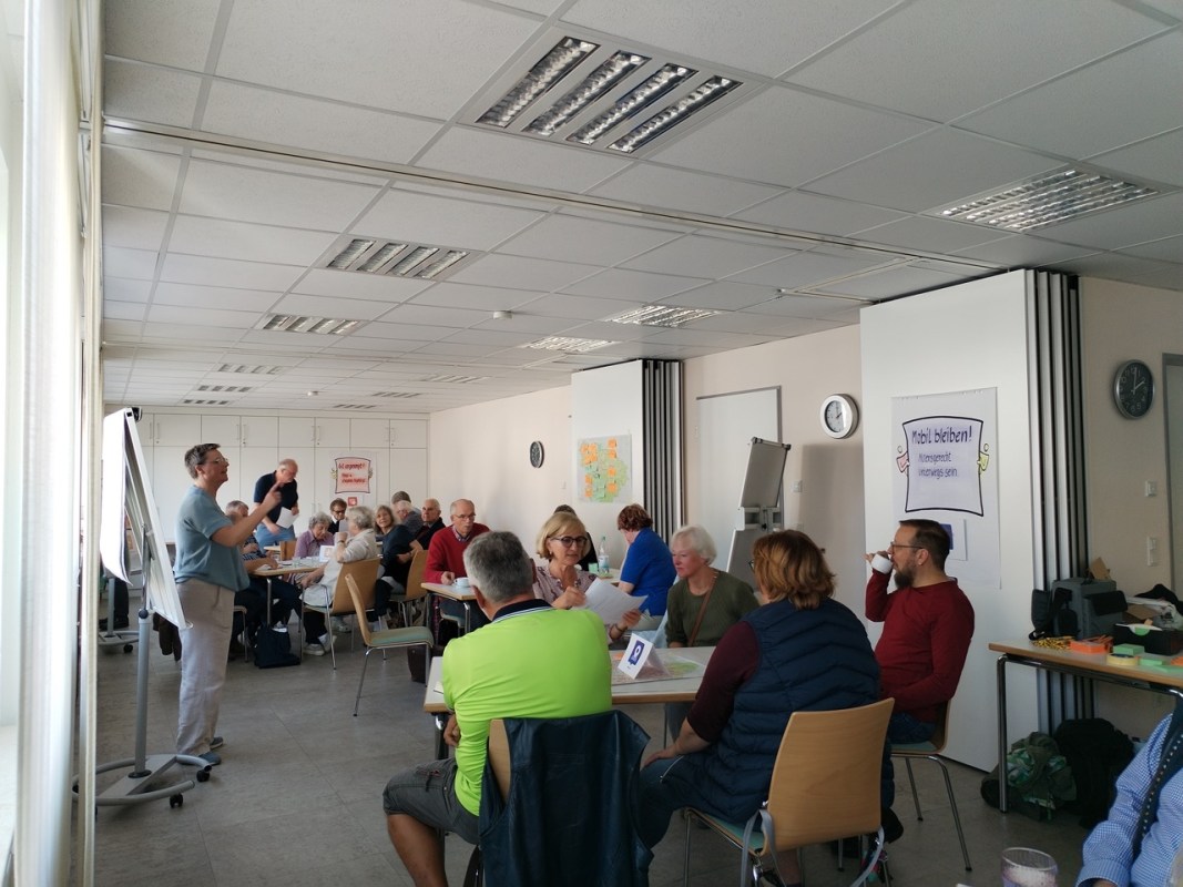 Gearbeitet wurde sowohl in der großen Runde, als auch in kleineren Gruppen. Dabei fiel auf, dass es einige Themen gebe, bei denen Problematiken allseits bekannt seien. Dazu gehören zum Beispiel der Mangel an barrierefreiem, bezahlbarem Wohnraum oder auch das Fehlen von öffentlichen Toiletten. Andere Themen, wie beispielsweise die Digitalisierung oder auch die seniorengerechte Öffentlichkeitsarbeit, seien vielen nicht im ersten Moment präsent, gehören aber definitiv zur Lebenswelt der Zielgruppe.