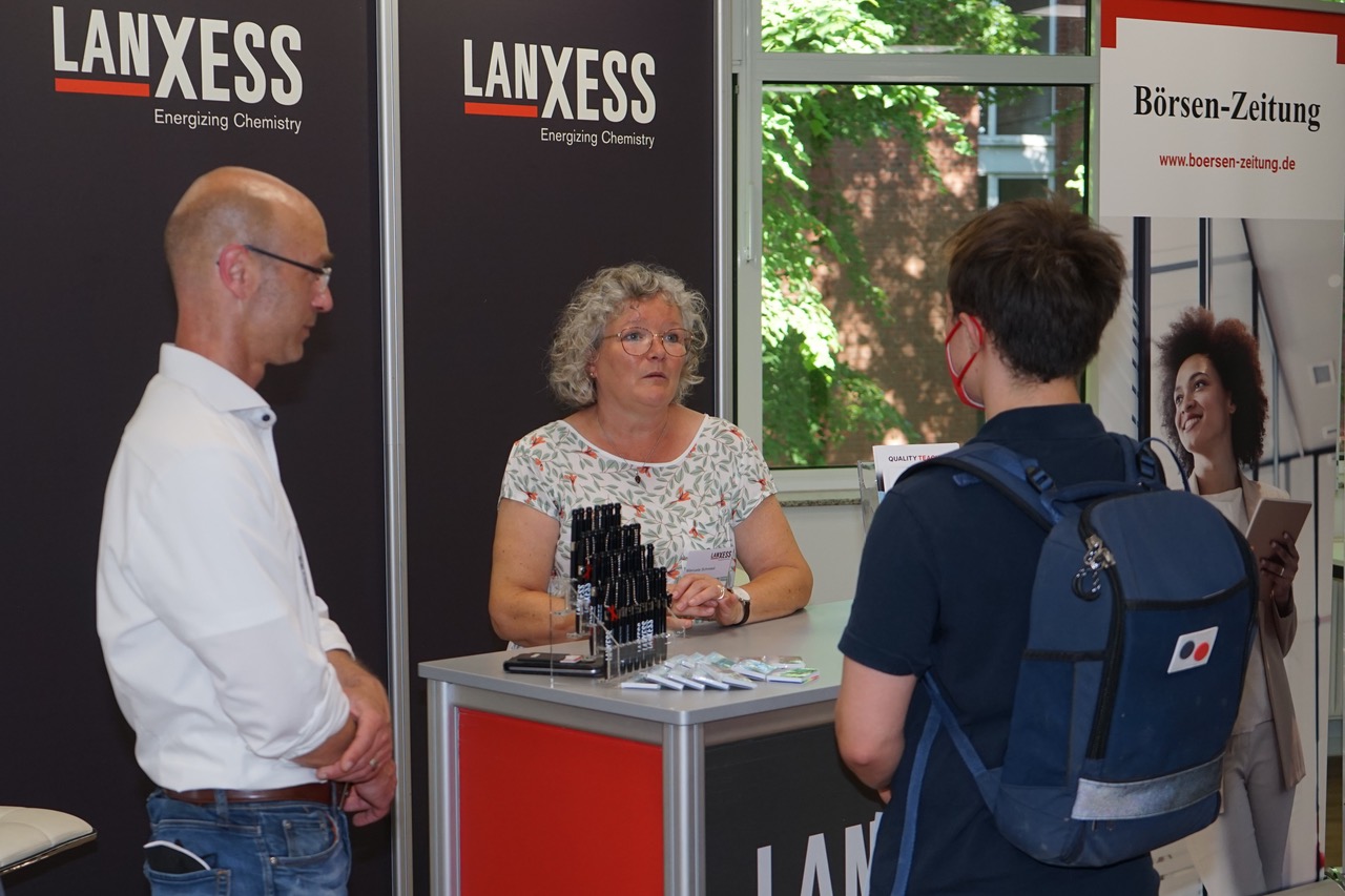 Beratung am Stand des Kölner Unternehmens Lanxess Deutschland GmbH