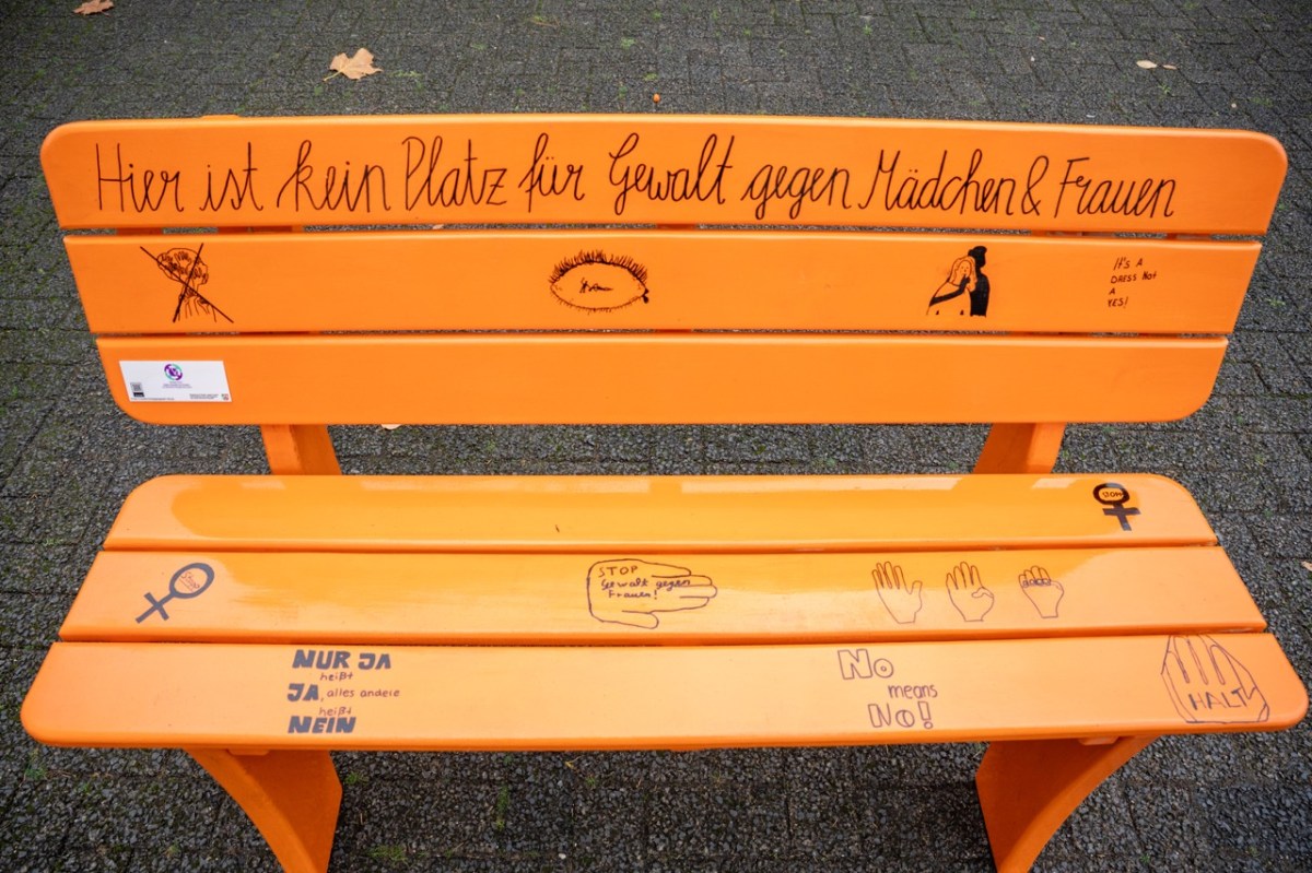 Hintergrund: Orange Day ist der internationale Tag gegen Gewalt an Frauen, der jährlich am 25. November stattfindet. Dabei sind oft orangene Bänke zu sehen – als Mahnmal gegen Gewalt gegen Frauen.
