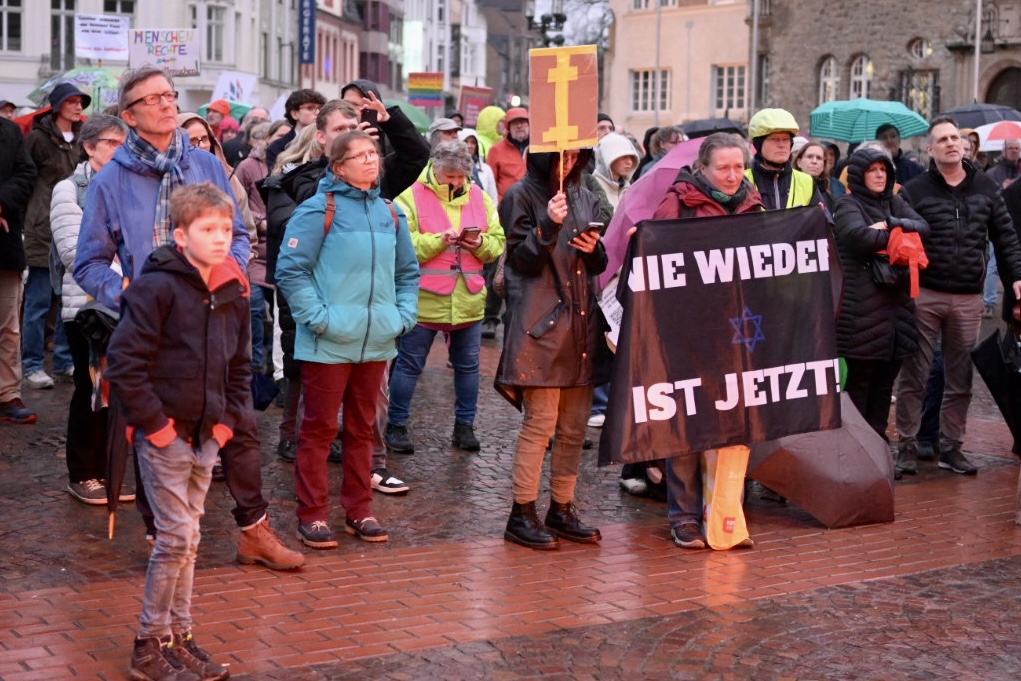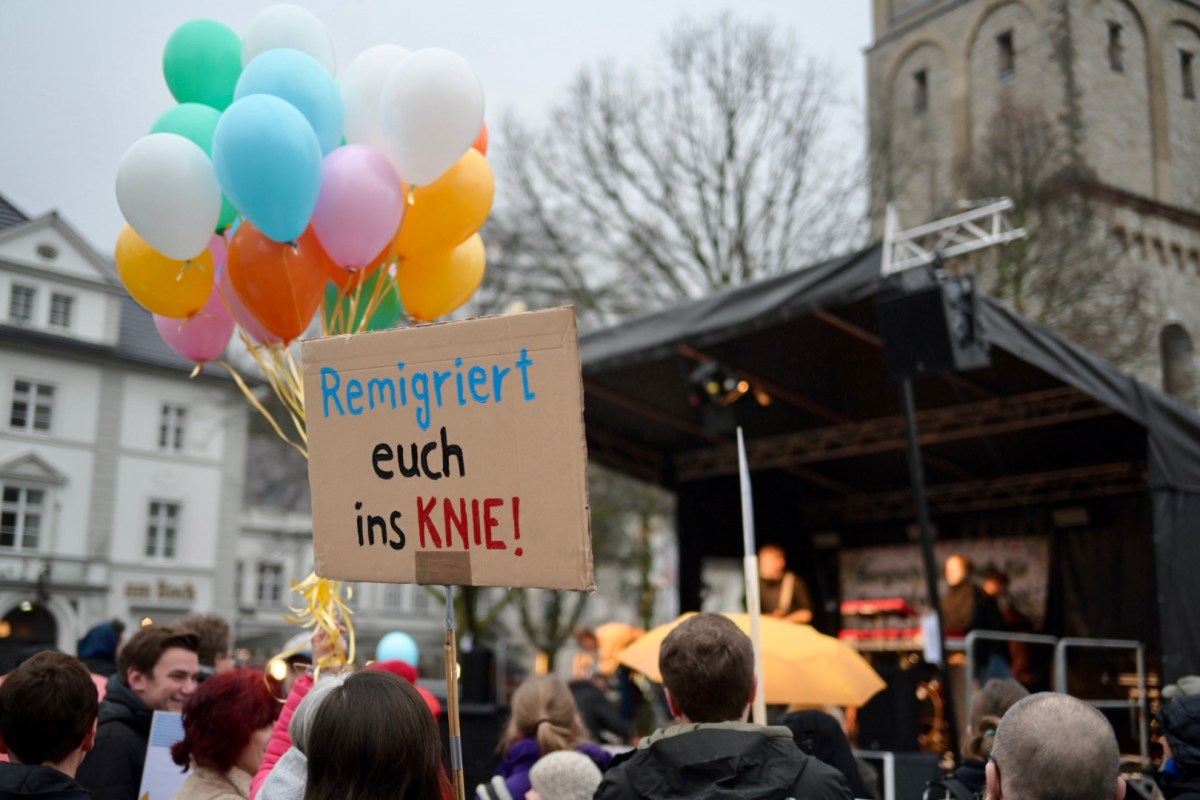 Hintergrund: Nach einer ersten Demonstration nach dem Bekanntwerden eines Treffens von rechtsextremen Identitären mit Vertretern der AfD und der Werteunion in Potsdam hatte sich in Bergisch Gladbach ein informelles Bündnis gebildet, das die Demonstration am Samstag organisiert hat – um gegen den „populistischen Ascherfreitag“ der AfD Stellung zu beziehen.