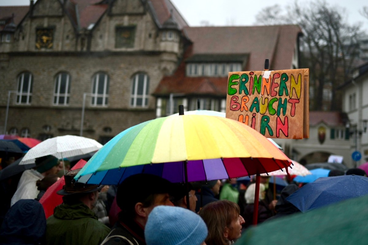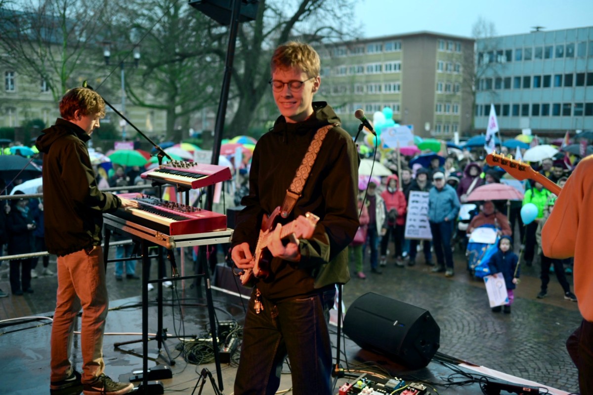 Nach einer guten Stunde scheint die Konzentration bei vielen aufgebraucht: Der Marktplatz wird langsam leerer. Vielleicht ist es auch einfach nur das Wetter. Vielleicht hätte mehr Musik zwischen den vielen wichtigen, aber auch gewichtigen Wortbeiträgen gut getan, um immer mal wieder durchzuatmen.
