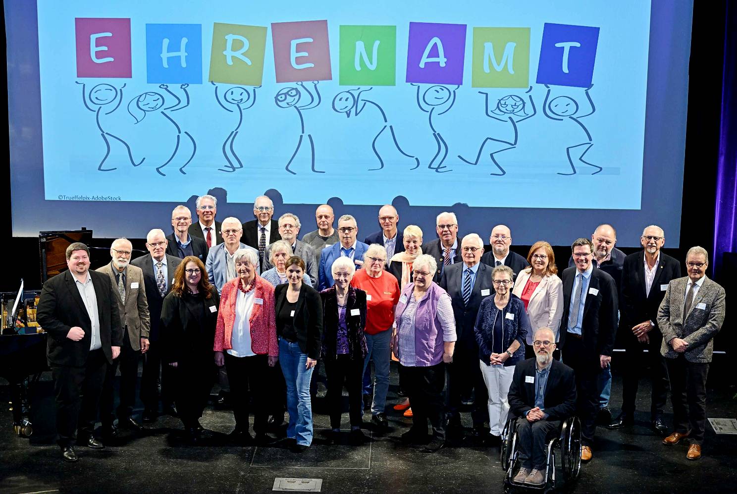 Jährlich ehrt der Rheinisch-Bergische Kreis Menschen, die sich ehrenamtlich in verschiedenen Bereichen engagieren. In diesem Jahr gehört neben Jugendförderung, Soziales und Kultur auch erstmals Natur- und Umweltschutz dazu. Für 2023 wurden nun 19 engagierte Frauen und Männer im Theatersaal des Bergischen Löwen in Bergisch Gladbach durch Landrat Stephan Santelmann mit der Ehrennadel in Gold für ihr Engagement und ihre Verdienste für die Gesellschaft geehrt.