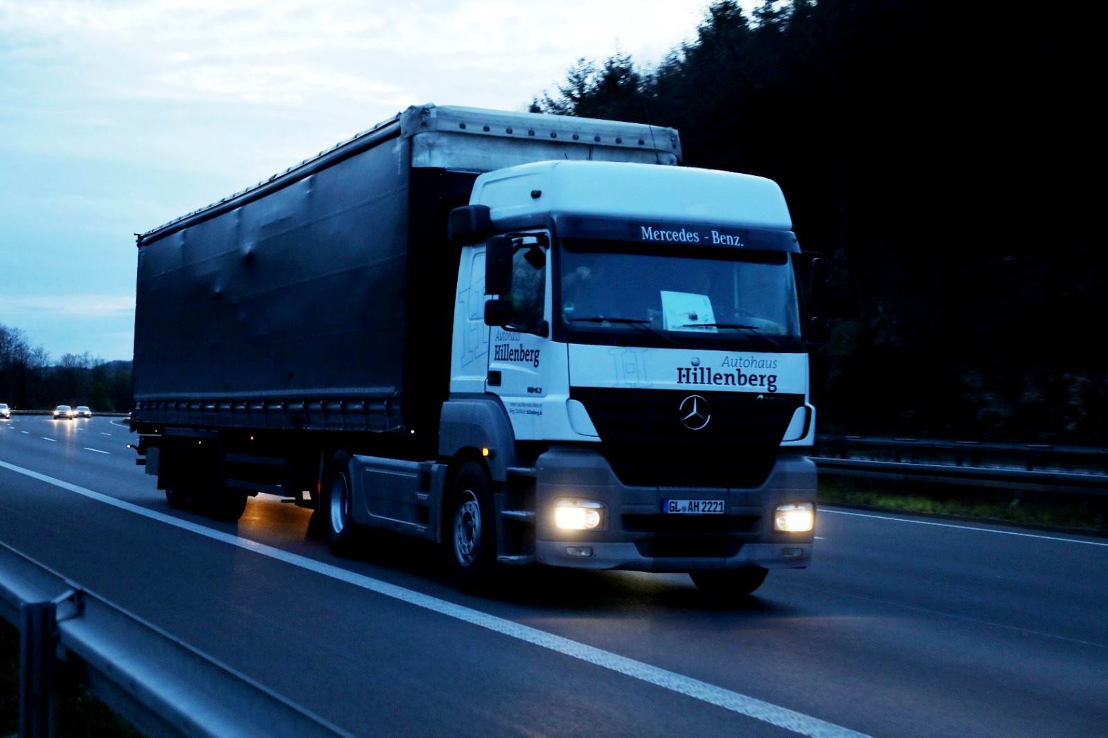 Auf dem Weg in die Ukraine: Der Lastzug mit Hilfsgütern aus Bergisch Gladbach auf der A4. Foto: Guido Wagner