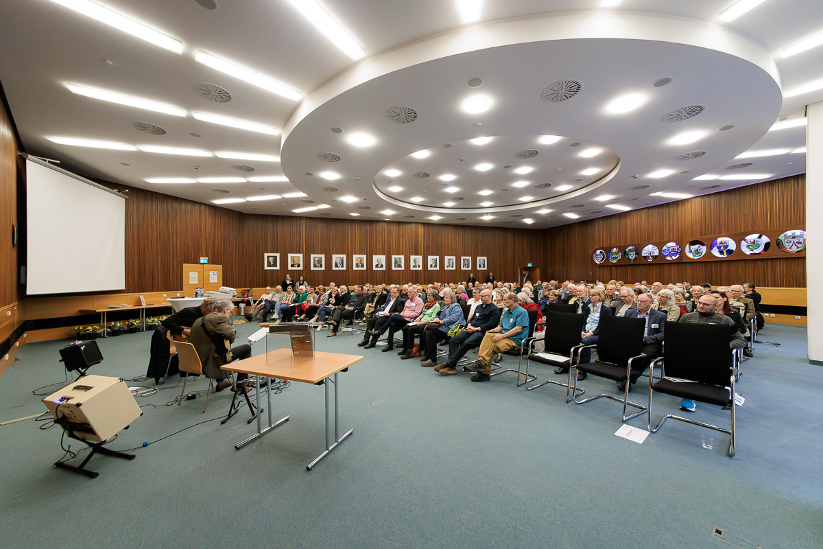 Allerdings reichte die Bestuhlung nicht aus. Wegen des großen Andrangs mussten zusätzliche Sitzgelegenheiten aus den umliegenden Räumen geholt werden.