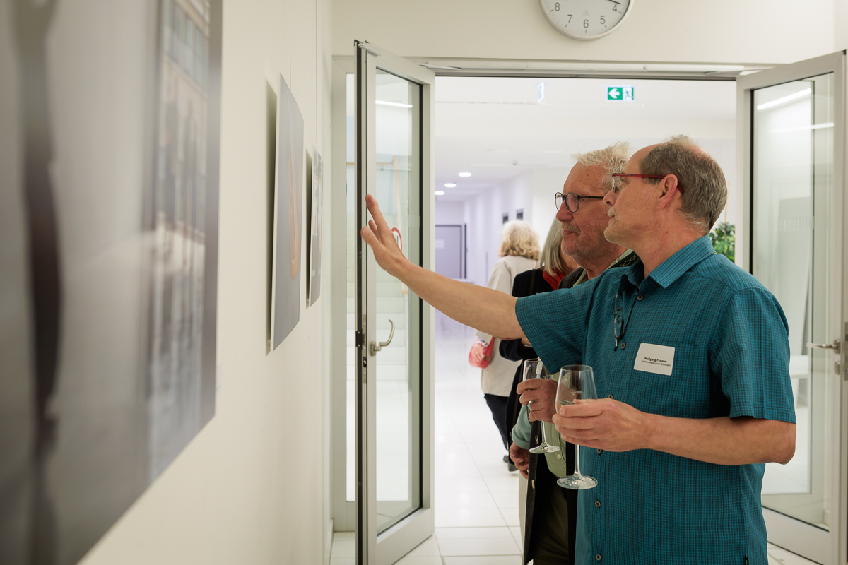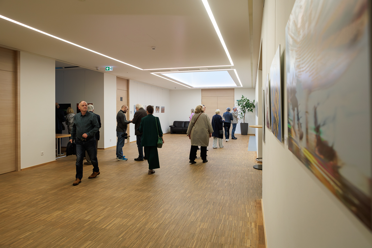 Nachdem die Ausstellung offiziell eröffnet war, konnten die rund 140 Gäste endlich die Werke in Augenschein nehmen. Dabei gab es neben staunenden Blicken auch unzählige Fachgespräche.