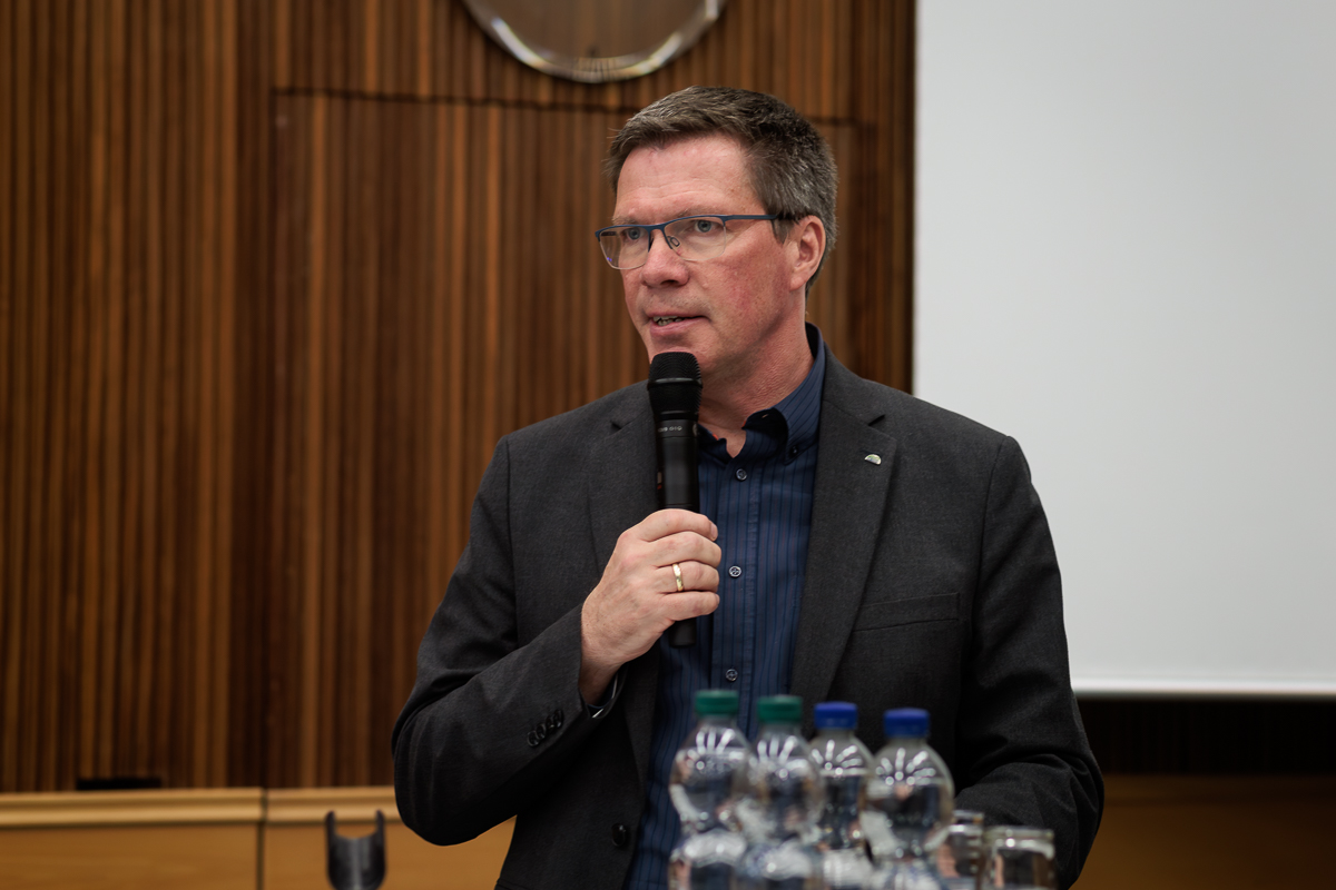 Kurz vor der offiziellen Eröffnung konnte ich einen Blick in den großen Sitzungssaal werfen. Ein Rednerpult, zwei Gitarrenverstärker, ein Beamer und unzählige Stuhlreihen. Offenbar rechnete man mit vielen Besucherinnen und Besuchern.