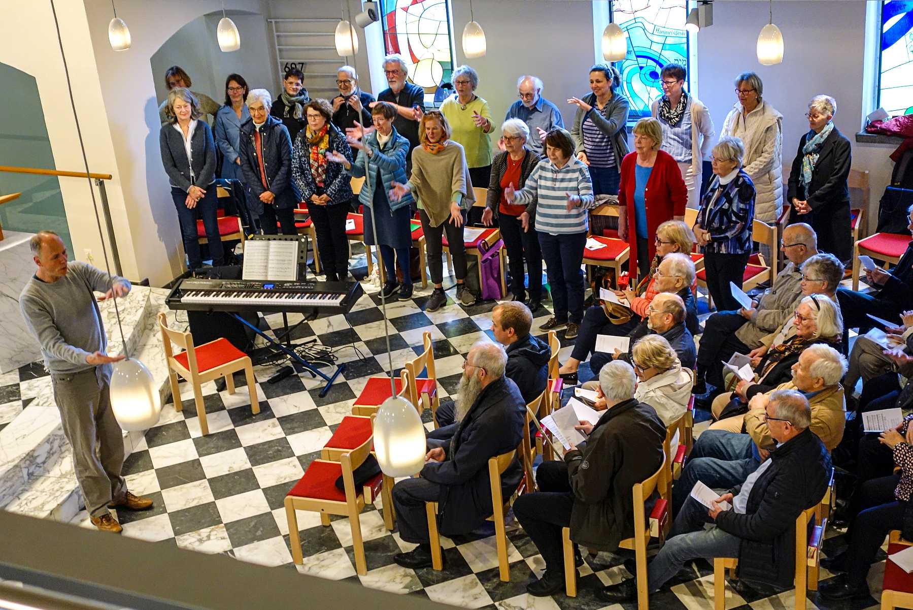 Die Dialogpredigt der beiden Liturgen Pfarrer i.R. Heinz-Peter Janßen und Prädikantin Claudia Heidkamp zur Feier des 40. Geburtstags der Alten- und Familienhilfe wurde in musikalischer Vielfalt durch Chor, Bläser und Orgel gerahmt.