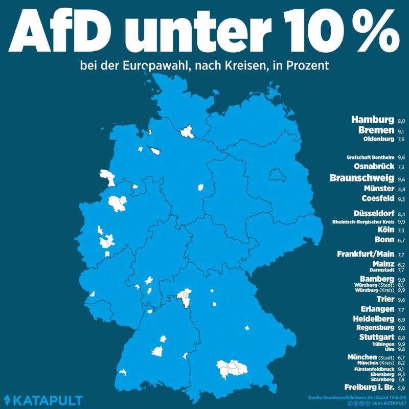 .. in welchen Kreisen die AFD unter zehn Prozent geblieben ist…