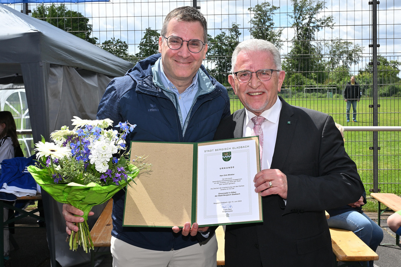 Jetzt wurde Winkler vom stellvertretenden Bürgermeister Josef Willnecker für sein außerordentliches Engagement im Ortsteil Sand mit der Ehrennadel in Silber der Stadt Bergisch Gladbach ausgezeichnet.