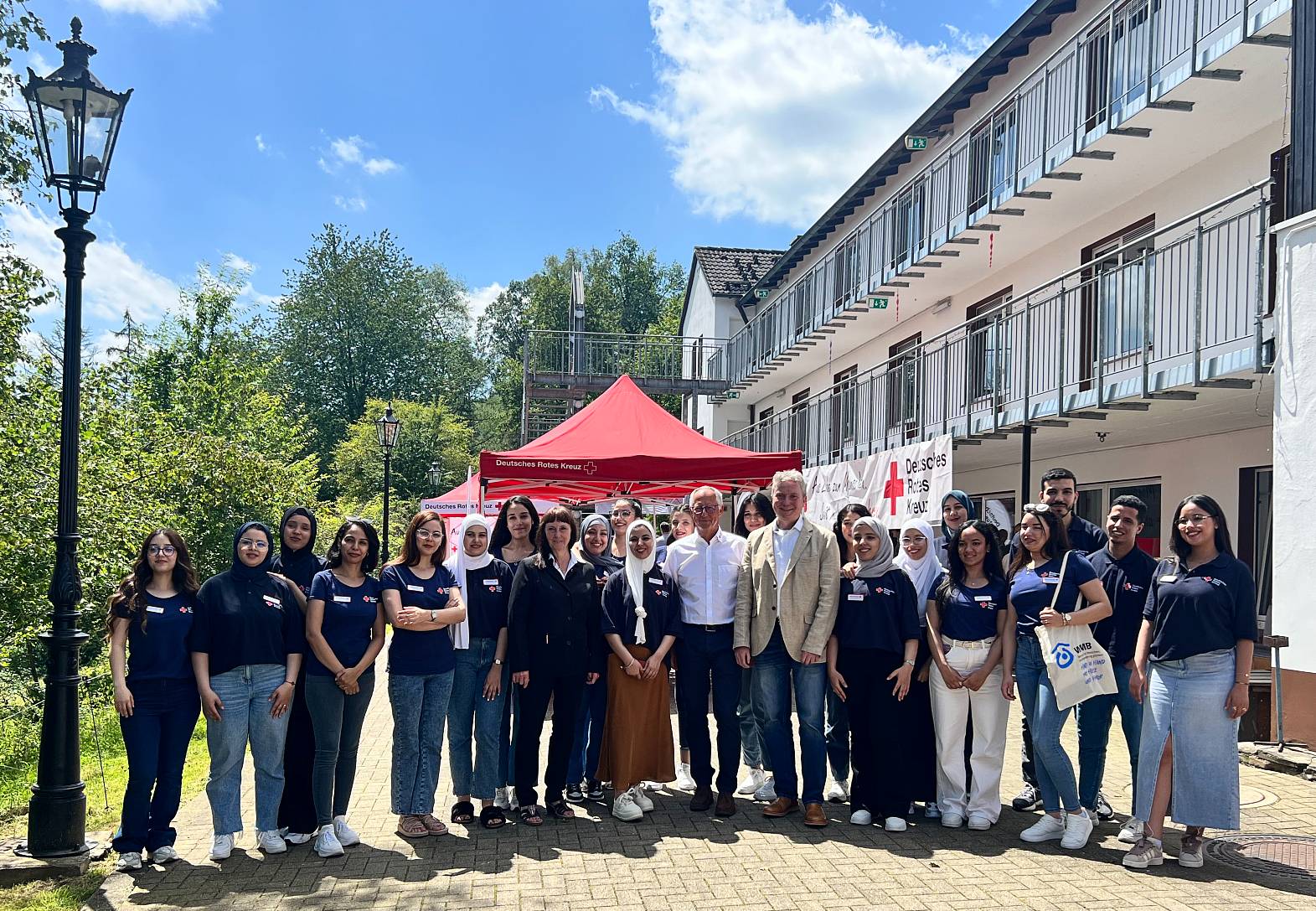 Nach einem erfolgreichen Probedurchgang, bei dem 16 junge Menschen aus dem Ausland auf ihre Tätigkeit als Pflegefachkraft in Deutschland vorbereitet wurden, hat die DRK-Zukunftswerkstatt nun offiziell ihren Betrieb aufgenommen. Bei strahlendem Sonnenschein wurde die Eröffnung mit vielen Gästen gefeiert.