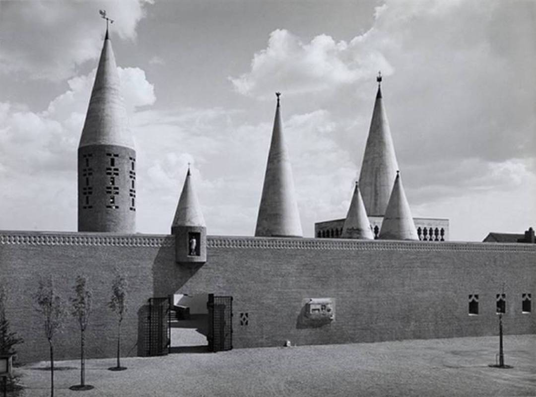 Die Herz Jesu Kirche bei der Fertigstellung 1960, noch ganz unverhüllt.