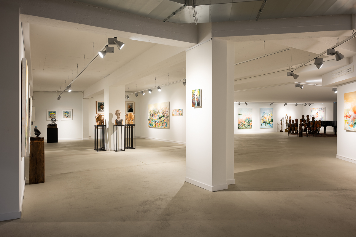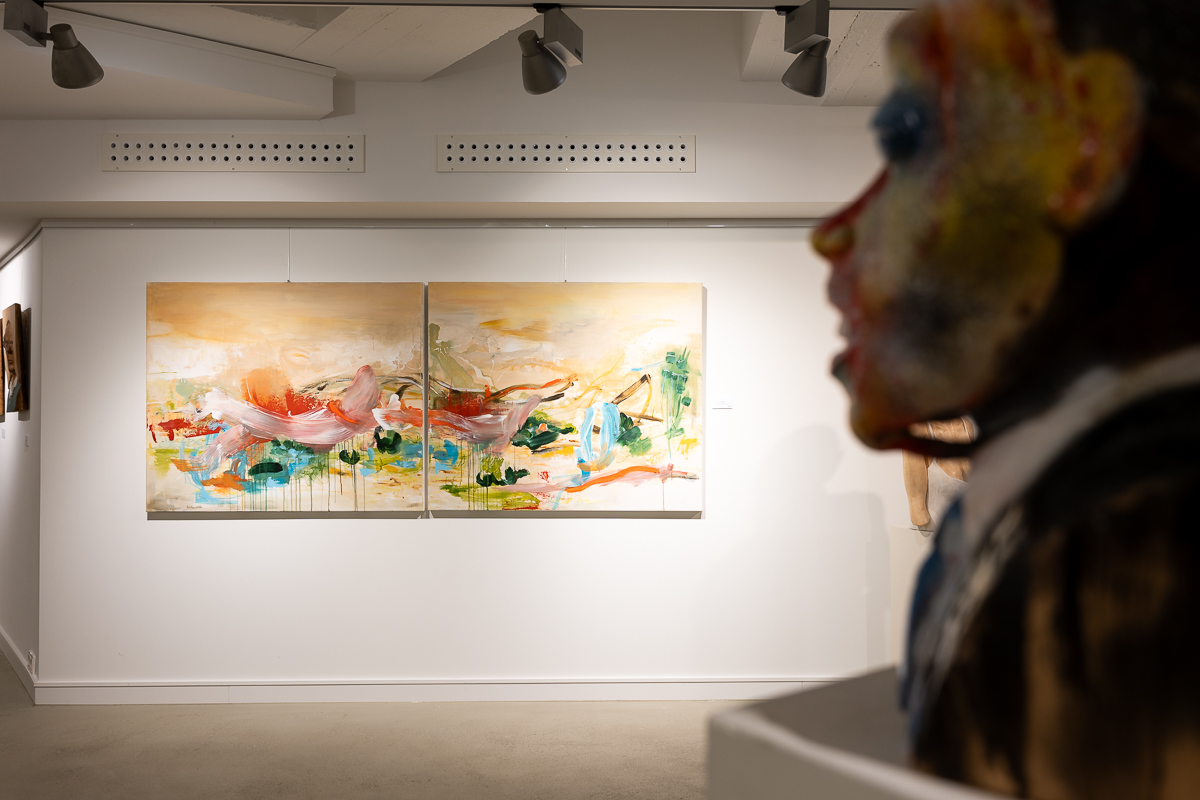 Die überwiegend großformatigen Leinwände von Nirma Siesenop strahlen mit kräftigen Farben und temperamentvollen Pinselstrichen in klassisch-abstrakter Manier. Daneben posieren – teils sehr humorvoll – die figürlichen Darstellungen des Hannoveraner Künstlers Otto Reinebeck.