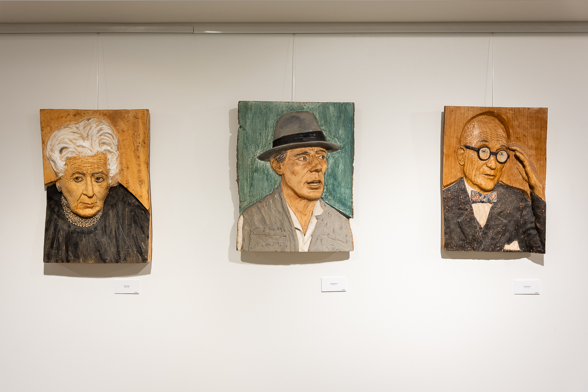 Reinebeck erschuf dutzende Reliefs von bekannten Persönlichkeiten, Architekten, Politikern und Künstlern – alle größtenteils mit Kettensäge bearbeitet. Das ermöglicht ihm eine zügige Arbeitsweise und eine besonders kontrastreiche Ästhetik. „Die Köpfe sollen echt aussehen, aber nicht zu glatt. Sonst bekommen sie schnell den Ausdruck von Schaufensterpuppen“, sagt Reinebeck. Abschließend hat der Künstler seine Skulpturen mit klassischen Schnitztechniken nachbearbeitet und farbenfroh bemalt – oft mit einer Prise Humor.
