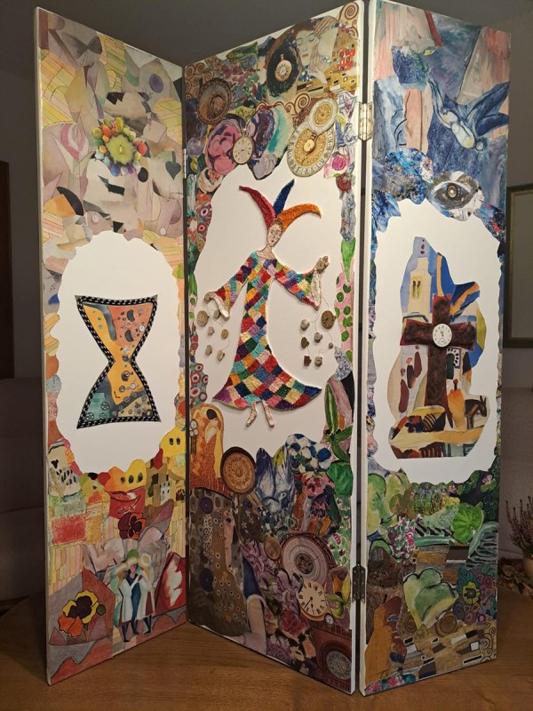 Das Krea-Team besteht aus einer Frauengruppe, die seit über 30 Jahren in unterschiedlichsten kreativen Bereichen tätig ist. Dieses Mal lag der Fokus auf der Malerei: Jede Teilnehmerin gestaltete einen dreiteiligen Paravent – ohne thematische Vorgaben. Das Ergebnis ist eine Vielfalt an Farben und Formen, die dem Kirchenraum eine besondere Atmosphäre verleihen.