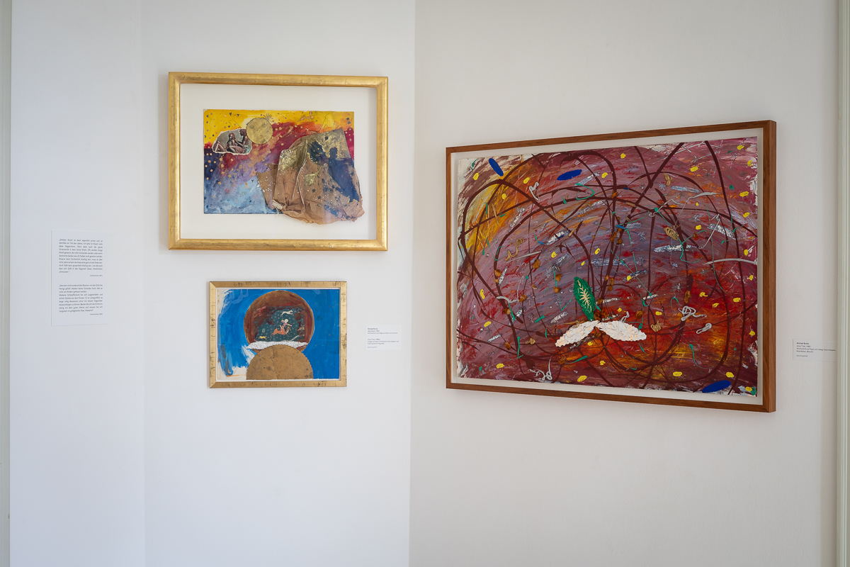 Auch alte Rahmen, Papierfilter, Bleistifte und Konservendosen wurden zu Kunst, wenn Buthe sie beispielsweise in Collagen klebte und sie mit Gold betupfte. Kraft sieht darin „eine Verschränkung von Abfallprodukten mit Hochkultur, mit Gold, mit schönen Farben“. Er fügte immer zusammen – auch Gegensätzliches. So habe er auch die Kulturen zusammenfügt, erläutert der Sammler.