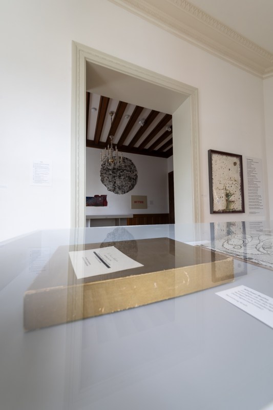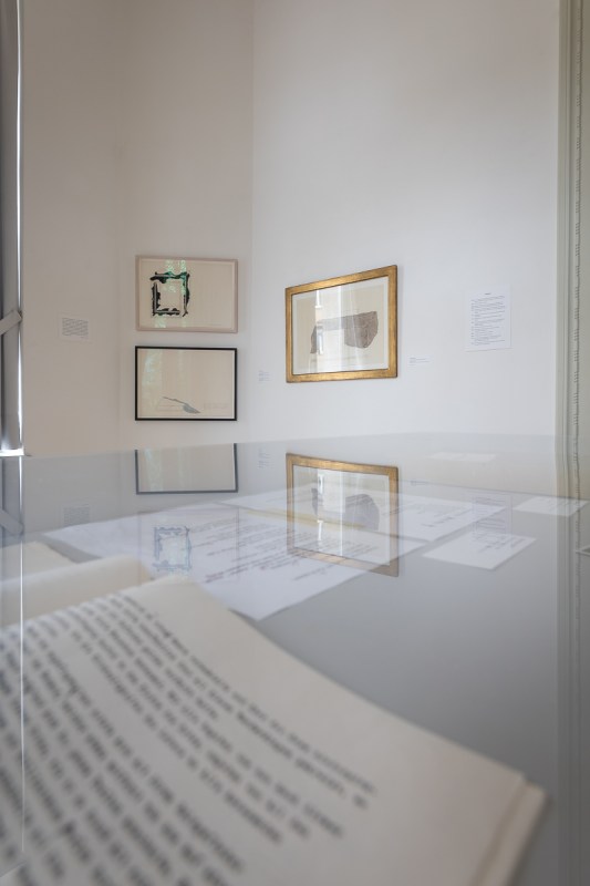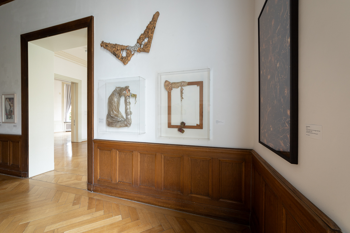 Wandobjekte, Zeichnungen, Kunstbücher, Collagen und Dokumente. Die Präsentation wird begleitet von Wandtexten, die aus der Feder des Kölner Sammlers Hartmut Kraft stammen.