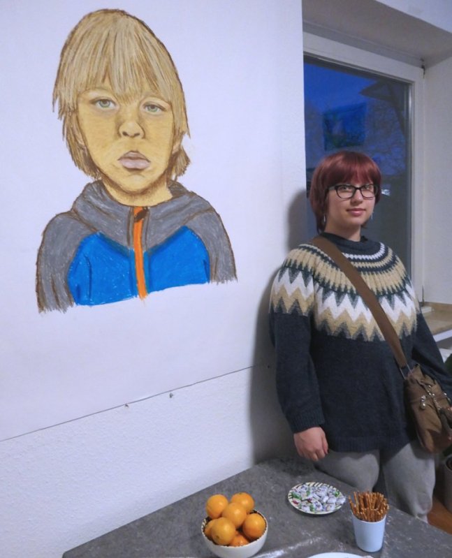 Die 16jährige Arina mit dem Porträt von ihrem jüngerem Bruder Foto: Helga Niekammer