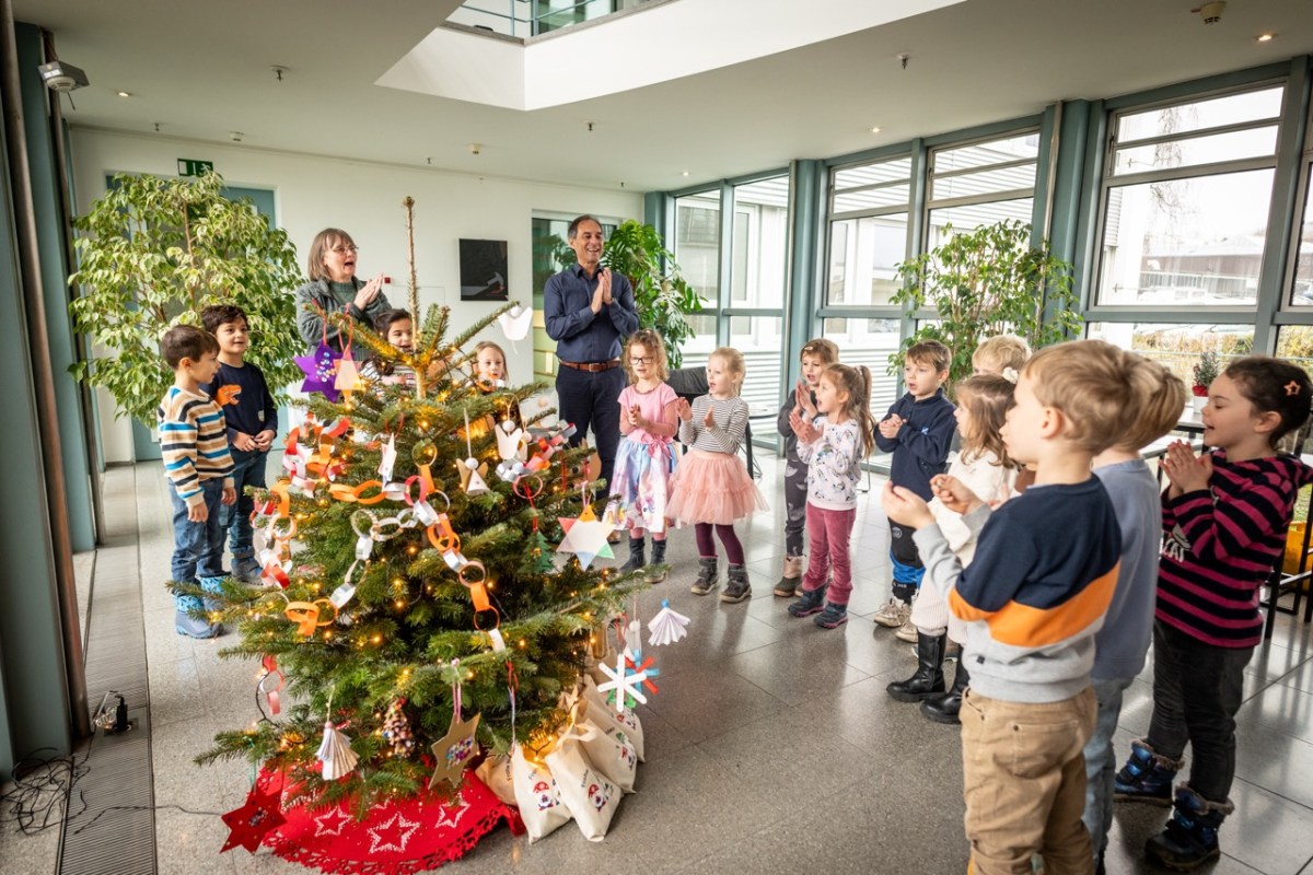 Unter Anleitung ihrer Betreuerinnen und Betreuer dekorierten die Kinder der evangelischen Kita Hermann-Löns-Straße den Weihnachtsbaum im Eingangsbereich des Unternehmens liebevoll mit selbst gebasteltem Schmuck. Neben dem künstlerischen Engagement der Kleinen standen vor allem Spaß und Gemeinschaft im Vordergrund.