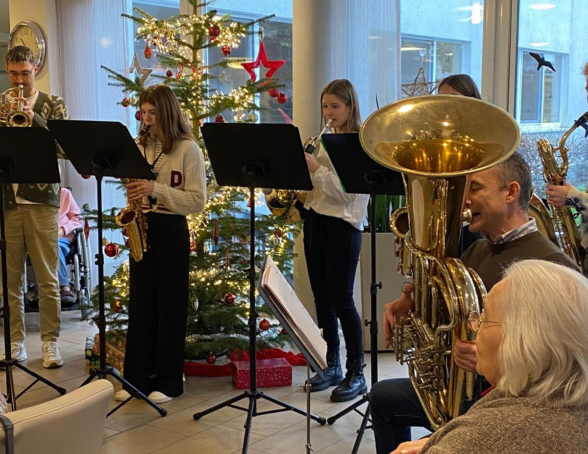Kurz vor Weihnachten sorgte ein Teil der Big Band des Gymnasiums Herkenrath für ein ganz besonderes Highlight: Die jungen Musikerinnen und Musiker gaben ein exklusives Konzert im benachbarten Altersheim.