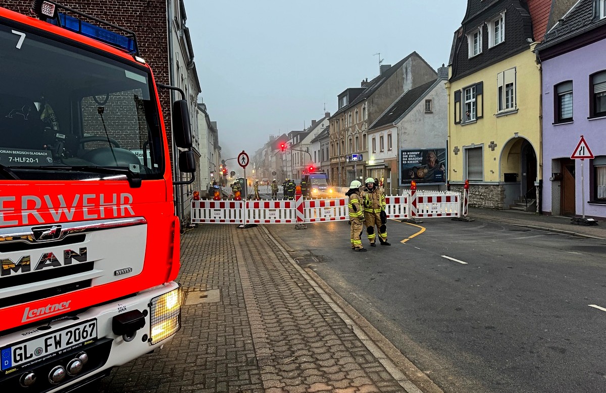Von Bewohnern alarmiert hat die Feuerwehr am Sonntag ein altes Mehrfamilienhaus an der Odenthaler Straße untersucht – und angesichts tiefer Risse im Mauerwerk und vor allem im Keller sofort geräumt. Drei Bewohner mussten das Haus verlassen. Da akute Einsturzgefahr besteht wurde die Odenthaler Straße am Sonntag zwischen den Einmündungen Jägerstraße und Gertrudenstraße  in beide Richtungen gesperrt.