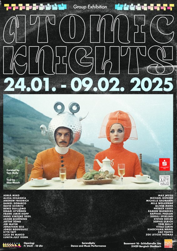 Marlis Sauer, Galeristin im Basement 16, öffnet einmal jährlich ihre Ausstellungsräume für Nachwuchskünstler. Für die aktuelle Ausstellung „Atomic Knights” hat sie die Kuration und Organisation bewusst in die Hände von Tom Gully gelegt, einen Künstler, den sie aus einem früheren Projekt mit der Alauns Hochschule kennt.