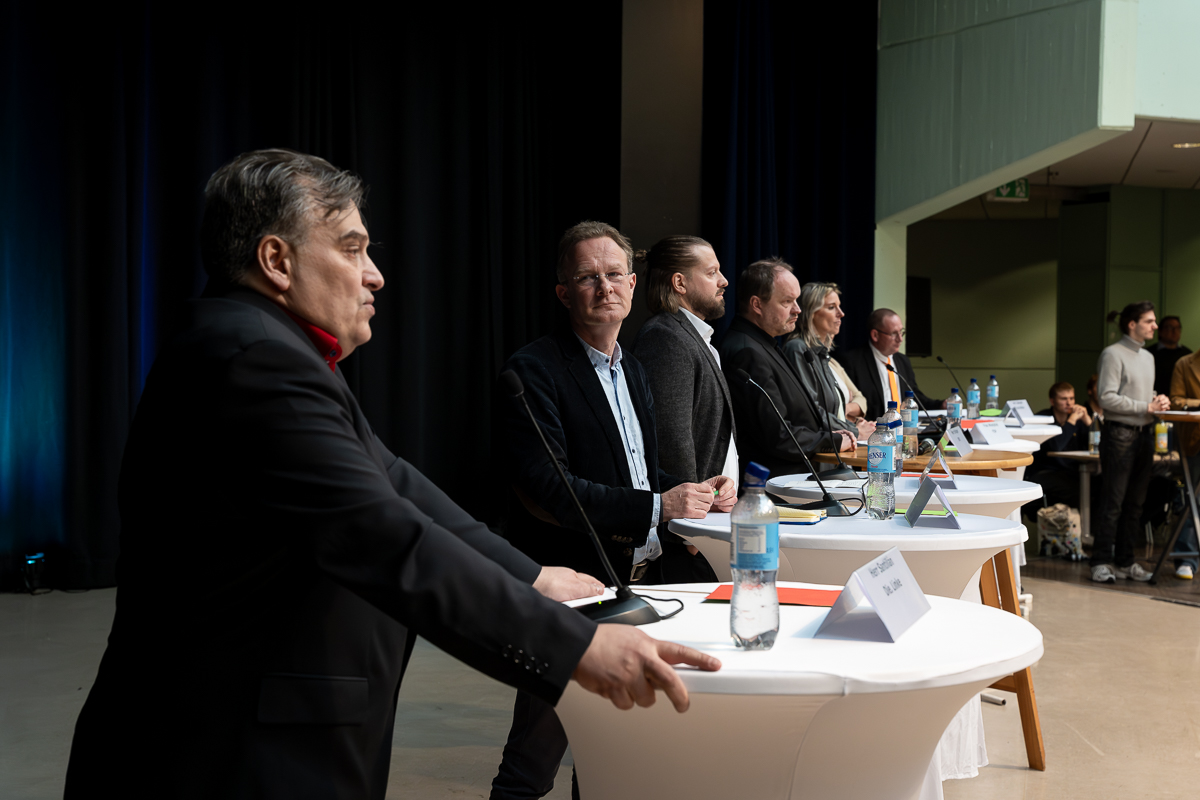 Durch den Abend führten die beiden Moderatoren Georg Watzlawek und Michael Schubek, die jeweils zwei Kandidat:innen zum Gespräch auf die Bühne holten und ihnen die am häufigsten formulierten der insgesamt rund 670 Fragen der WahlAgenda stellten.