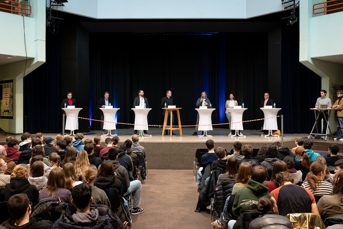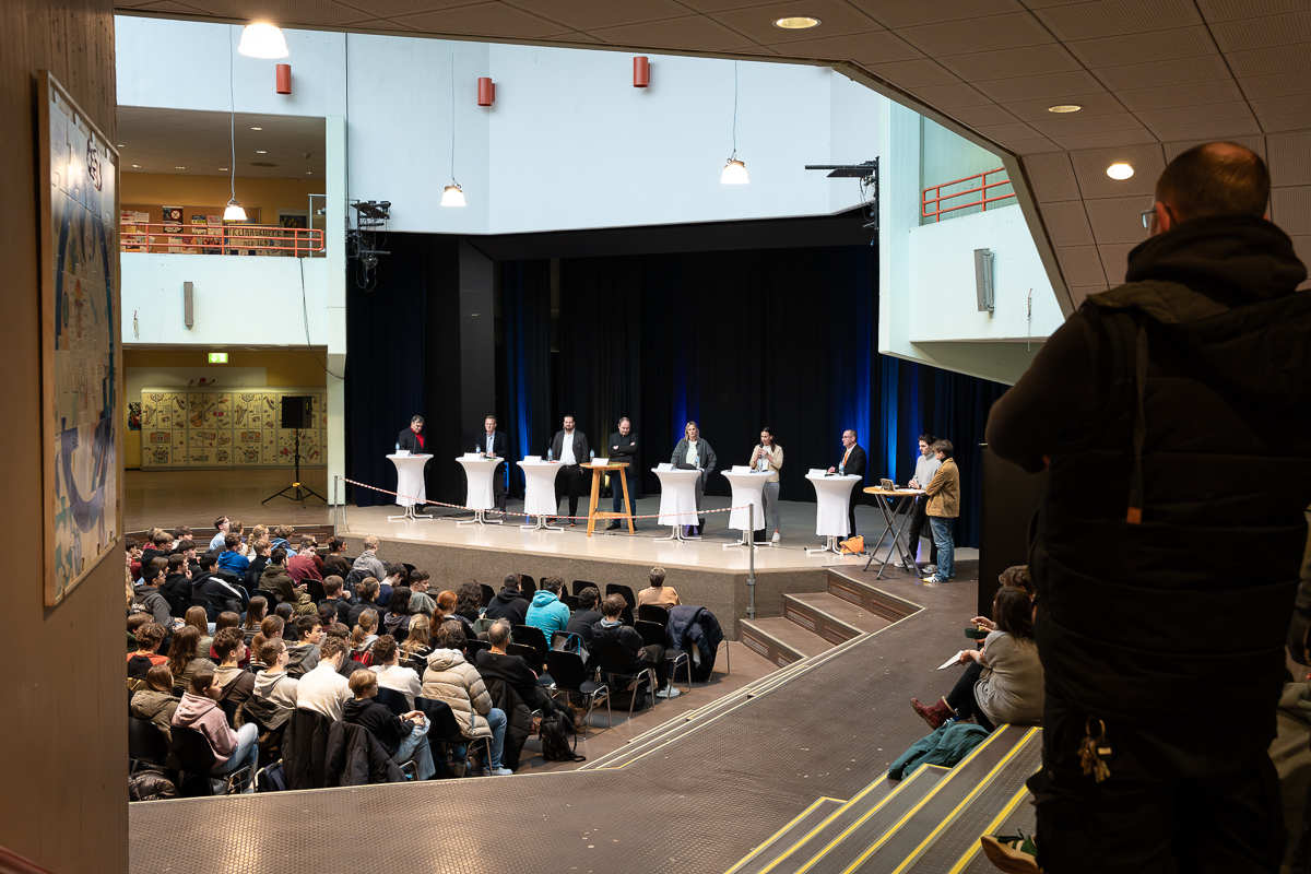 Bereits am Nachmittag hatten sich die Kandidat:innen in einem Schüler-Parlament in der IGP den Fragen der Schülerinnen und Schüler gestellt, mehr dazu am Ende dieses Textes.