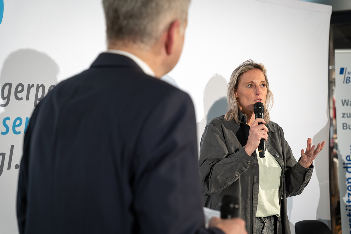 Zu viele Kandidat:innen, zu viele Themen in zu kurzer Zeit. Dieses Manko hatten wir noch während der Veranstaltung eingeräumt. Es gibt darüber hinaus aus die BürgerClubs, in denen wir vier Bewerber:innen jeweils 90 Minuten Zeit geben, am Mittwoch ist Caroline Bosbach an der Reihe.