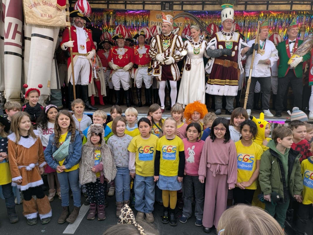 Bevor es zum Höhepunkt – dem Bauernwiegen – kommt, singt der Schul-Chor unter der Leitung von Musiklehrer Ingo Müller das Lied von der „GGS Paffrath“, die im Lied „zwischen Möbel Lenz und Bäcker Lob“ liegt. Die Verbundenheit zwischen Schule und Bäckerei drückt sich auch in diesem schuleigenen Lied aus.