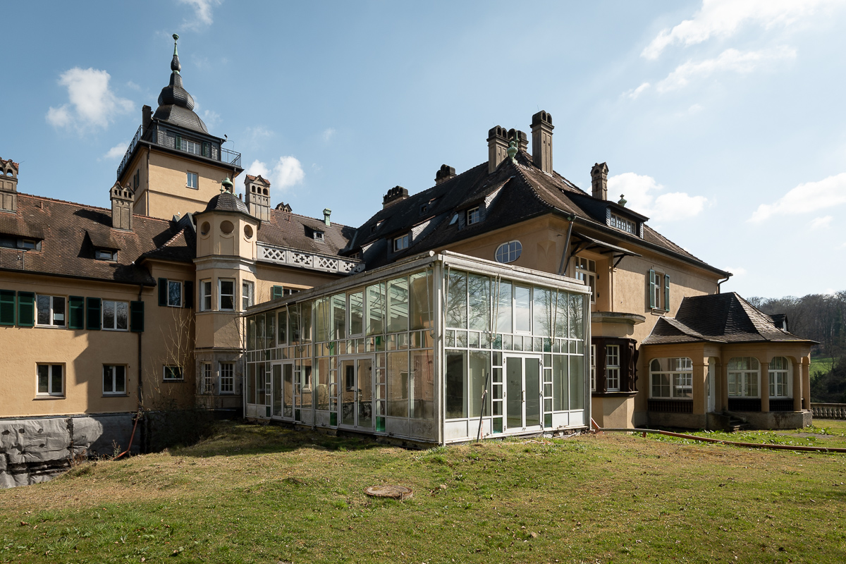 Der Rückbau betrifft auch den Pavillon aus Stahl und Glas, der Anfang der 90er Jahren auf abenteuerliche Art und Weise auf eine Terrasse hinter dem Schloss gesetzt worden war – und das berühmte „Gourmet-Restaurant Dieter Müller“ beherbergte. Inzwischen ist die Konstruktion weitgehend entkernt und soll bald abgerissen werden.