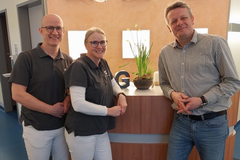 „Wir versorgen auch Patienten nach einem Aufenthalt im Krankenhaus. Sollte zur Kontrolle ein Röntgenbild erforderlich sein, erfolgt dies in Kooperation mit der Praxis am Berg. Das geht ganz schnell, die Kollegen sind hier im Haus direkt eine Etage unter uns“, sagt Gilbert.