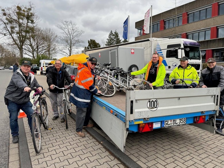 „Humanitäre Hilfe” Bergisch Gladbach und Overath den Transport der Räder in die Ukraine, wo sie gezielt und bedarfsorientiert verteilt werden.