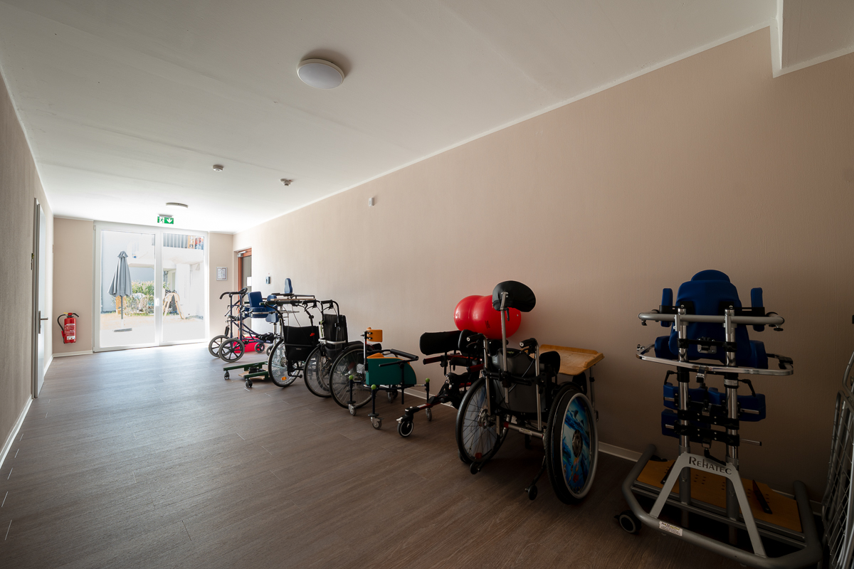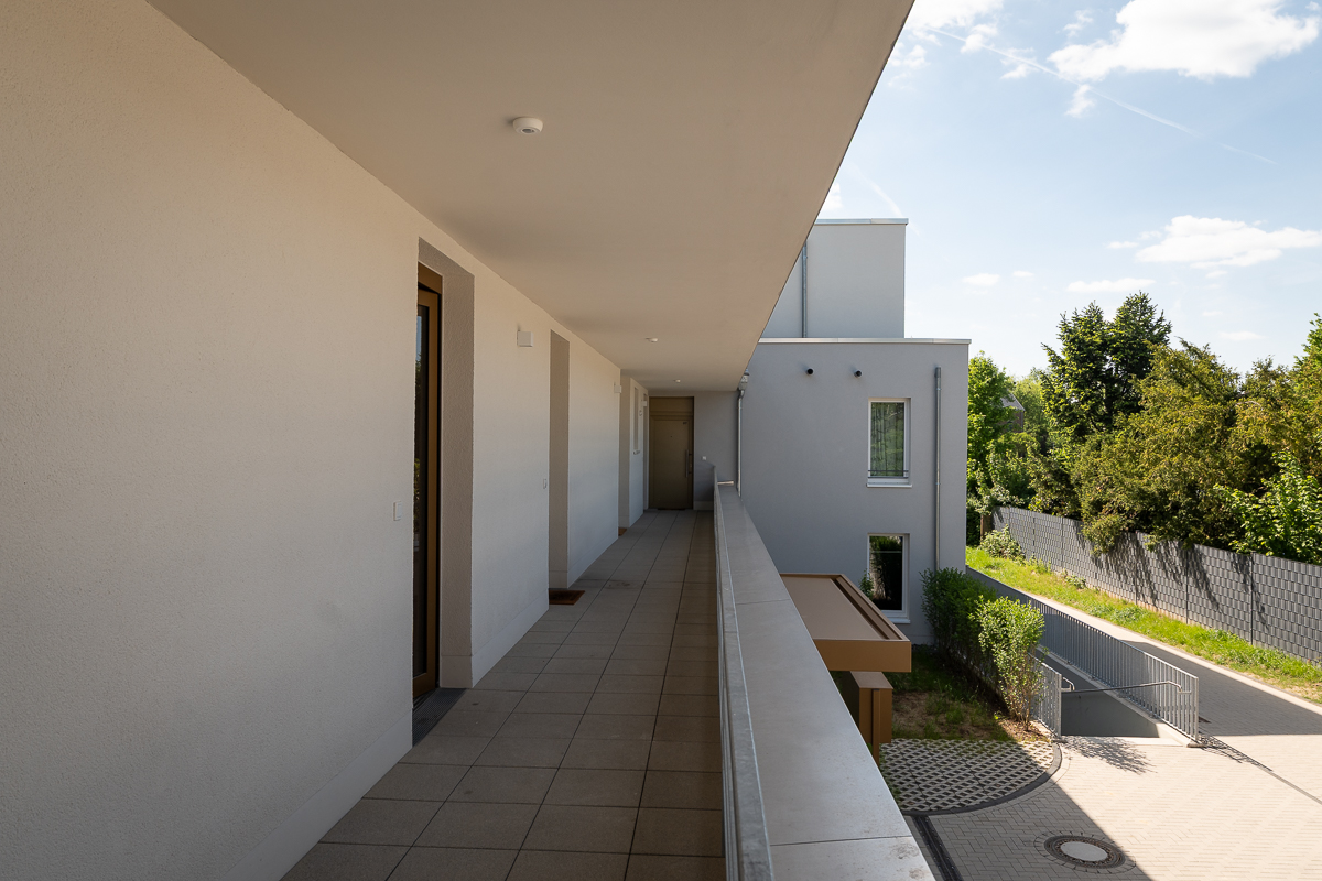 Alle Bewohner:innen haben ihr eigenes Appartement mit Küchenzeile, Bad und Terrasse. Rund um die Uhr sind Betreuer:innen vor Ort, die sie im Alltag unterstützen; ein ambulanter Pflegedienst übernimmt die Pflege.
