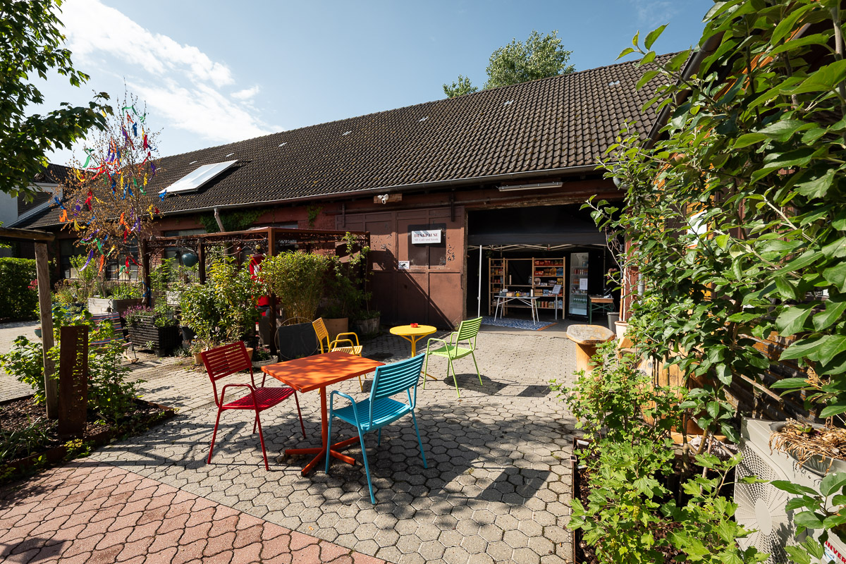 Jetzt finden in den Lux-Hallen – so der neue Name – Ausstellungen statt, Public Viewing für die Nachbarschaft, Kaffee oder Einkauf im Selbstbedienungskiosk, Büchertausch im Hof.