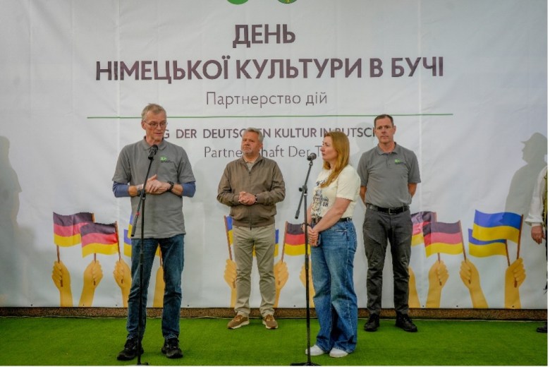 Tag der deutschen Kultur in Butscha: Frank Stein, Anatolii Fedoruk, Tetjana Rybakova und Jörg Köhler. Foto: Stadt Butscha