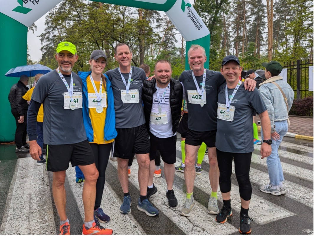 Die Teilnehmenden der deutschen Delegation nach dem Friedenslauf in Butscha. Foto: Stadt Butscha
