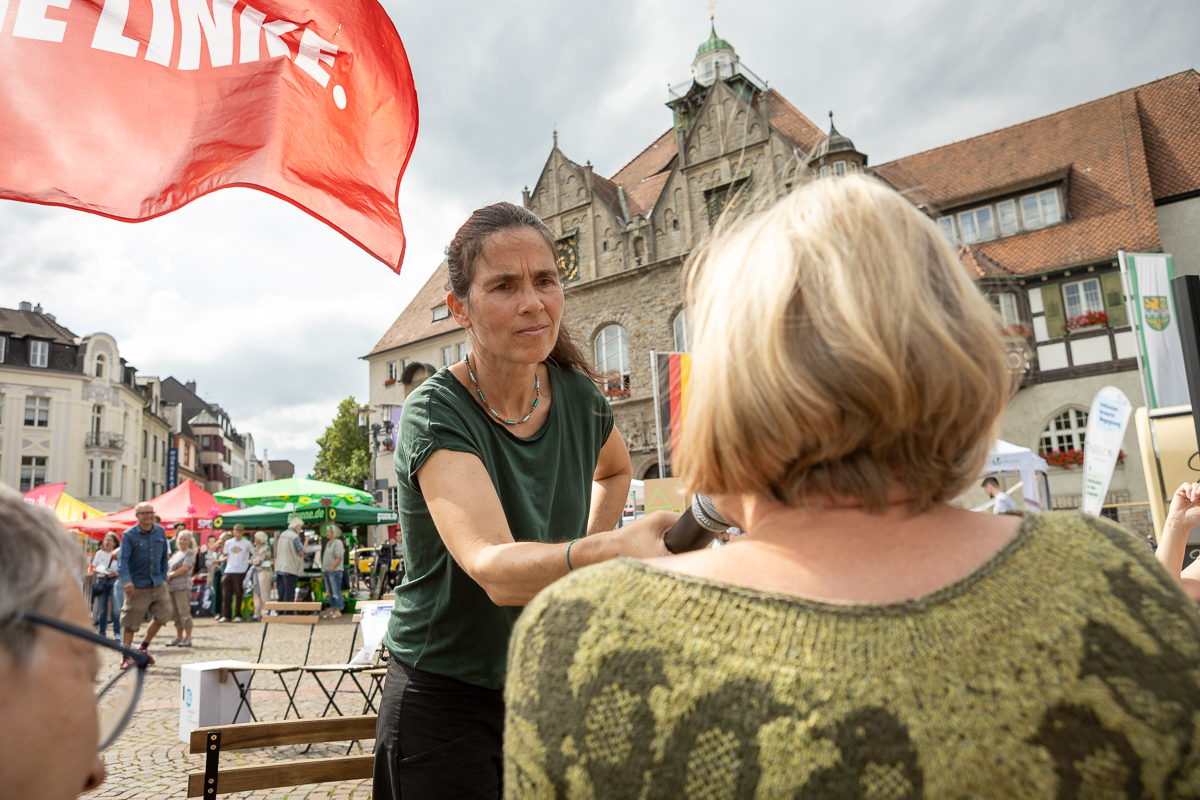 Außerdem traten die Bürgermeister-Kandidat:innen Aylin Aydogan (Linke) und Alexander Becker (Volt), die Landratsbewerber Arne von Boetticher (CDU) und Robert Winkels (CDU) sowie die Spitzenkandidat:innen Dorothee Wasmuth (FDP), Theresia Meinhardt (Grüne) und Rainer Röhr (FWG) auf.