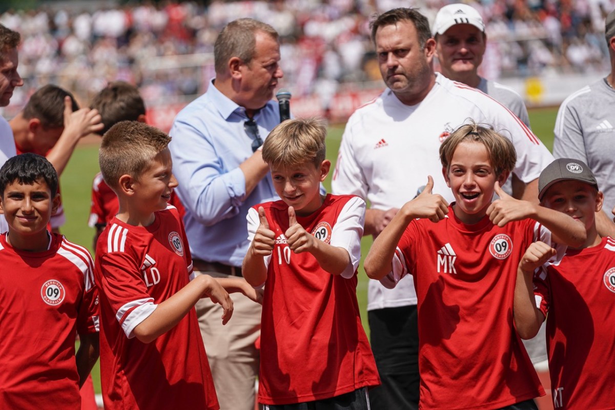 5000 Zuschauer haben die Belkaw Arena bis auf den letzten Platz gefüllt und ein großartiges Familien-Fußballfest im Sonnenschein erlebt. Zwar verlor der Oberligist SV Bergisch Gladbach 09 deutlich gegen die Profis des 1. FC Köln – aber er hat sich gut verkauft und viel Werbung für den eigenen Verein gemacht.