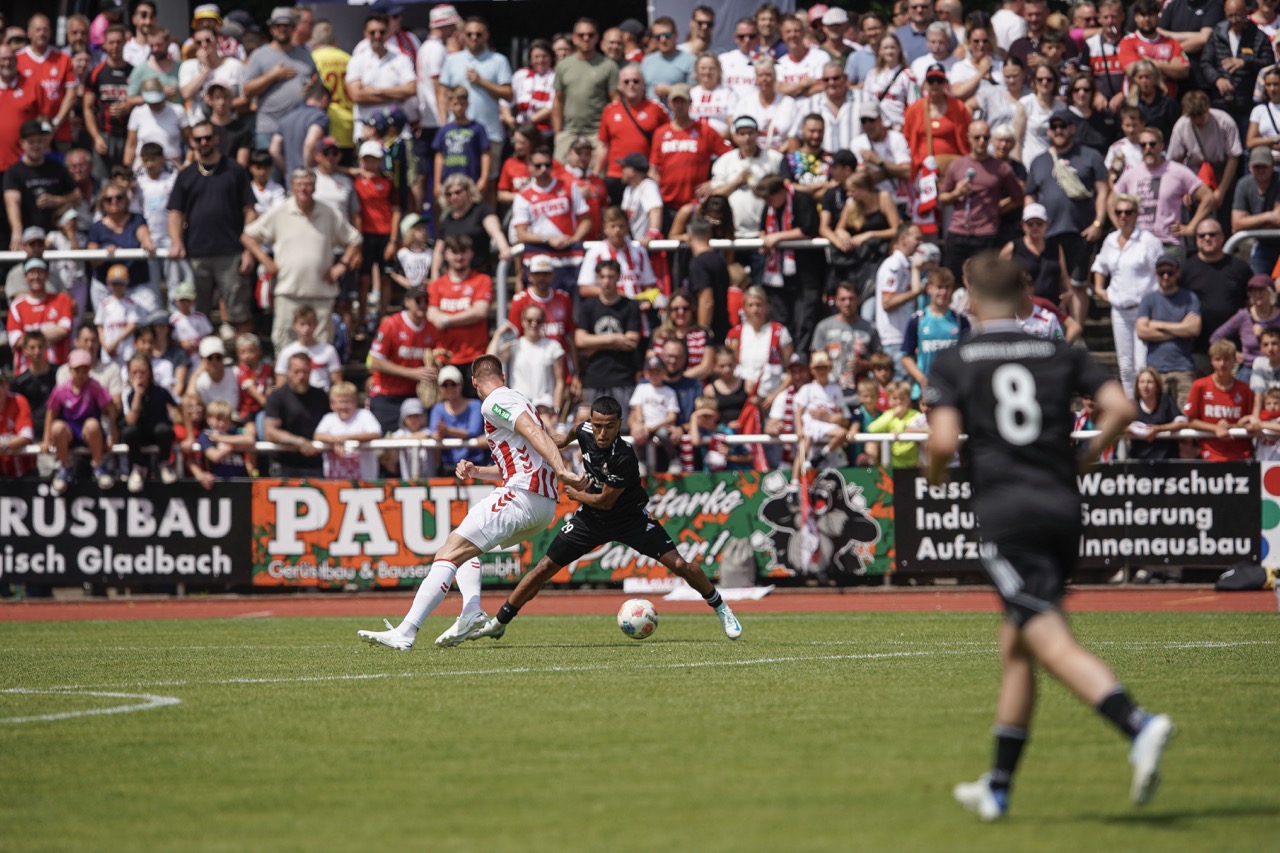 Im Match hielten der Oberligist klasse mit und erspielte sich einige Chancen. Von der 14. bis zur 18. Minute drehten die Geißböcke aber richtig auf und gingen durch einen Doppelpack von Linton Maina und einen weiteren Treffer von Steffen Tigges mit 3:0 in Führung.
