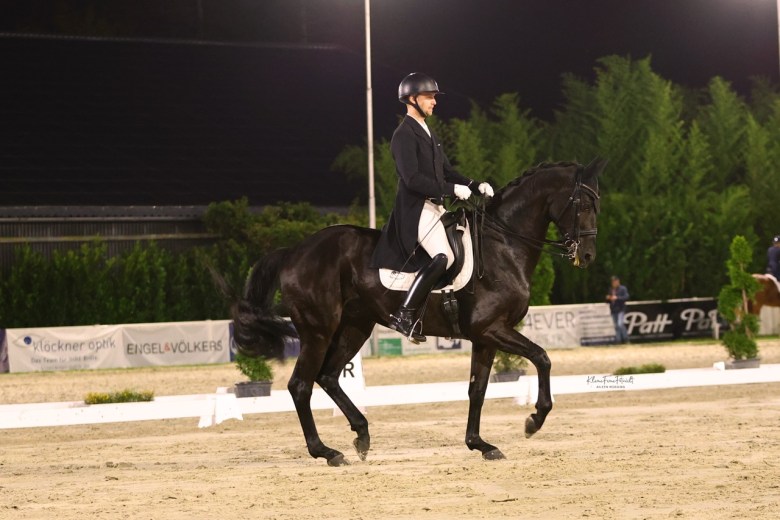 Mit einer starken Kür bestätigten der 37-Jährige und sein Pferd Forster ihre Wertnoten aus der Qualifikation am Vortag, setzten sich als drittletztes Starterpaar an die Spitze und verdrängten damit auch die Westfälische Meisterin Sophie Büschgens aus Warendorf auf Platz zwei, die mit ihrem Oldenburger Wallach Jannemann gleich zum Auftakt der Kür-Nacht unter Flutlicht ihre Extraklasse im Dressur-Viereck gezeigt hatte.