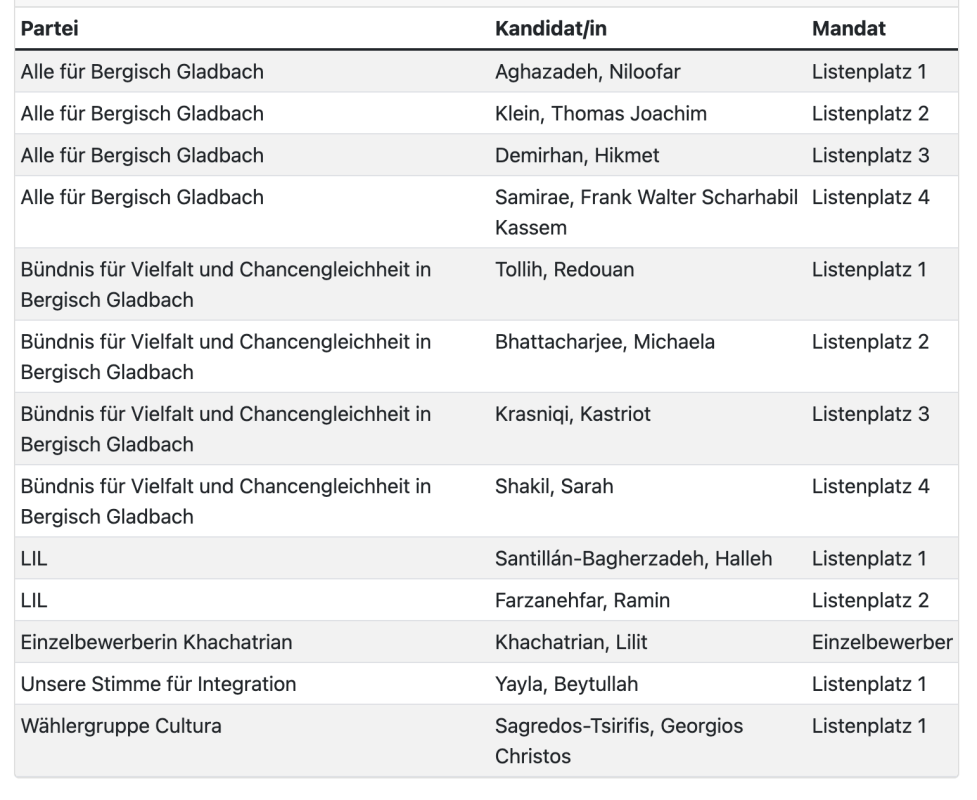 Die Bürger Partei ist keinen Partei und hat es geschafft mit KI generierten Plakaten und Unwahrheiten Plätze zu ergattern, während sie sich überhaupt nicht aktiv einbringt dafür aber jeden Cent aus der Stadtkasse für persönliche Vergütungen herauspresst. Warum wurde das so wenig kommuniziert? Wir brauchen in Bergisch Gladbach mehr Problembewusstsein für solche Geldmacher-Vereinigungen. Jedenfalls kann ich das nur so schreiben, nachdme ich den Artikel über diese Partei hier auf der Seite gelesen habe.