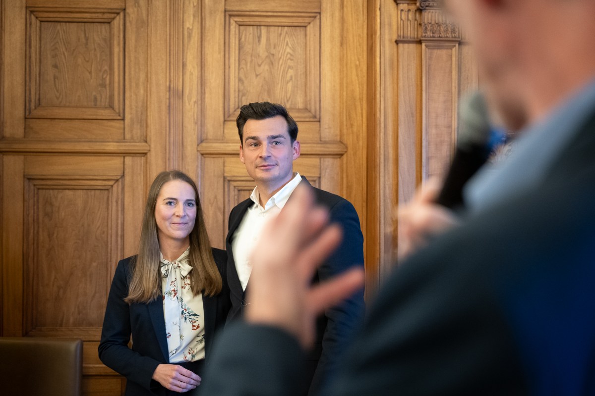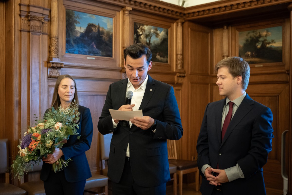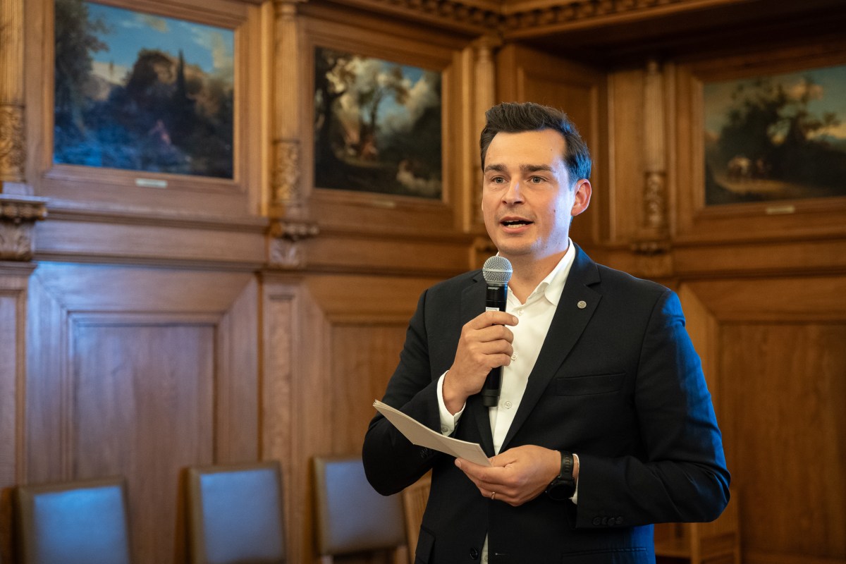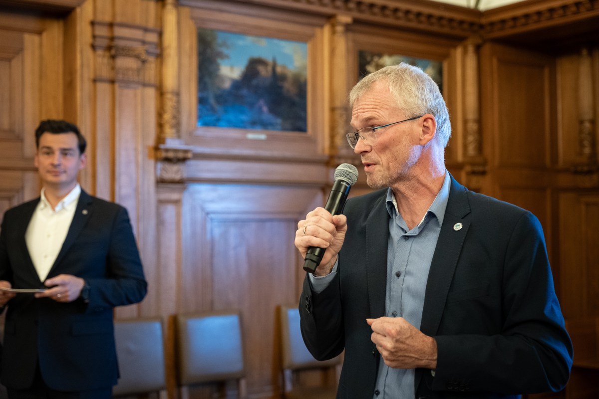 Im großen Ratssaal würdigt Bürgermeister Frank Stein den Einsatz aller Kandidaten bei der Kommunalwahl.