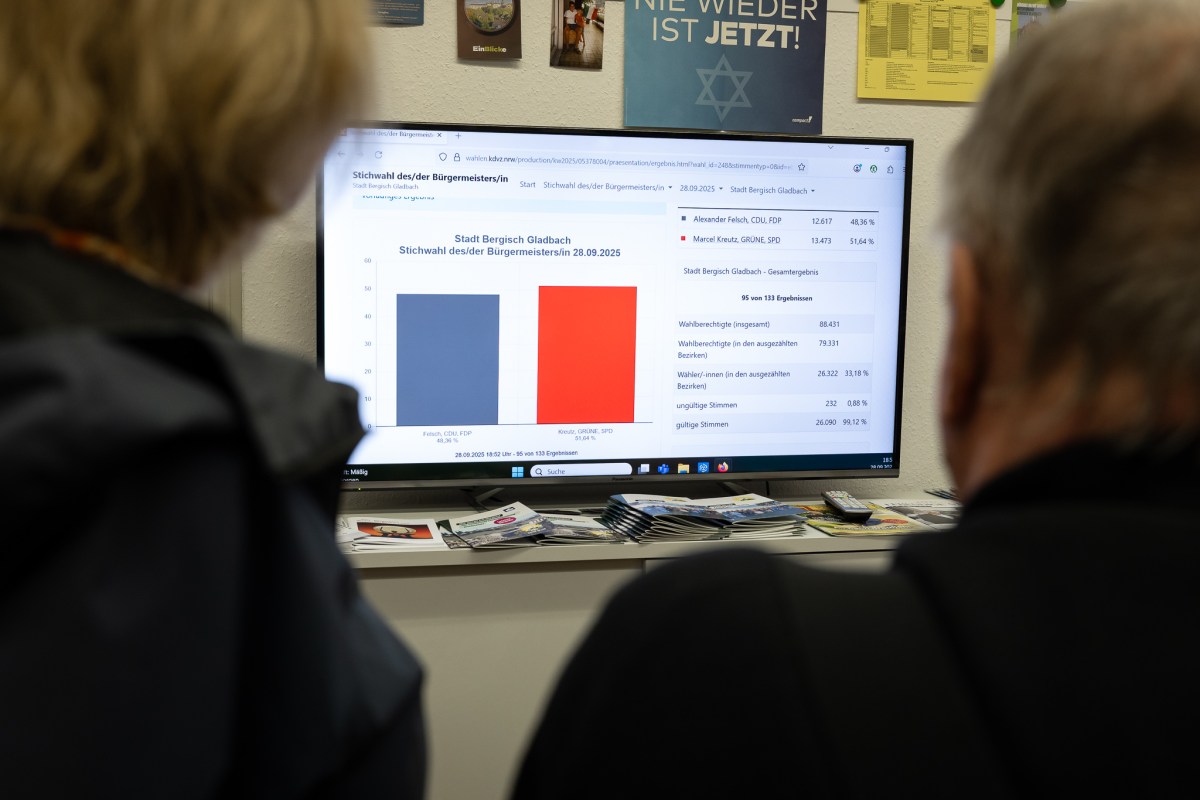 Bei der Bürgermeisterwahl hat Marcel Kreutz (SPD/Grüne) einen hauchdünnen Vorsprung ins Ziel gerettet und gewinnt mit 50,41 Prozent der Stimmen gegen Alexander Felsch (CDU/FDP) . Die CDU räumt ihre Niederlage ein. Bei der Stichwahl um das Amt des Landrats des Rheinisch-Bergischen Kreises setzt sich Arne von Boetticher (CDU) klar gegen Robert Winkels (SPD) durch. Wir berichten live.